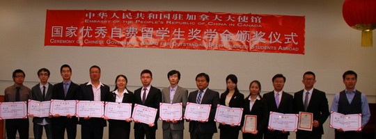 For their great achievements during their study in IEESC, Dr. Hua Zhu and Mr. Yurui Fan recently received the Chinese Outstanding Student Abroad Scholarship for the year 2013 from the Chinese government. They attended the award ceremony at Embassy of China in Canada in Ottawa on June 15. Dr. Zhu and Mr. Fan are the 17th and 18th IEESC student being awarded this scholarship since it was launched in 2004.