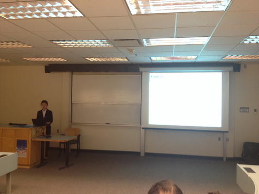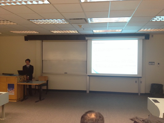 On the night of November 19, 2014, Ms. Yuanyuan Zhai and Mr. Xiong Zhou gave an interesting seminar on their latest research work to IEESC staff and students. The title of their presentations are "Development of Inexact Optimization Methods for Planning Environmental Management Systems under Multiple Uncertainties" and "Development of Two-stage Fractional Programming Methods for Environmental Management under Uncertainty" respectively. After their presentations, Ms. Zhai and Mr. Zhou had a thorough discussion with the audience about the potential research extensions.