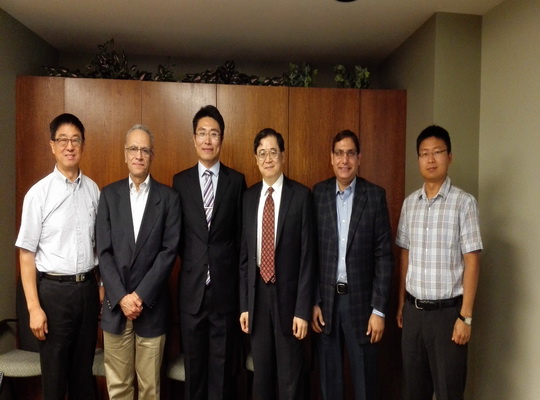 On the morning of August 26, 2015, Mr. Xiuquan Wang successfully passed his PhD dissertation defense. His thesis title is “High-Resolution Regional Climate Downscaling and Probabilistic Projection for Impact Assessment - A Canadian Case Study”. His profound knowledge and excellent presentation helped him win the good evaluation from external examiner, Dr. Jing Ming Chen (University of Toronto) and other examining committee members (Drs. Gordon Huang, Xuedong Yang, Imran Maqsood, Chunjiang An and Nader Mobed).