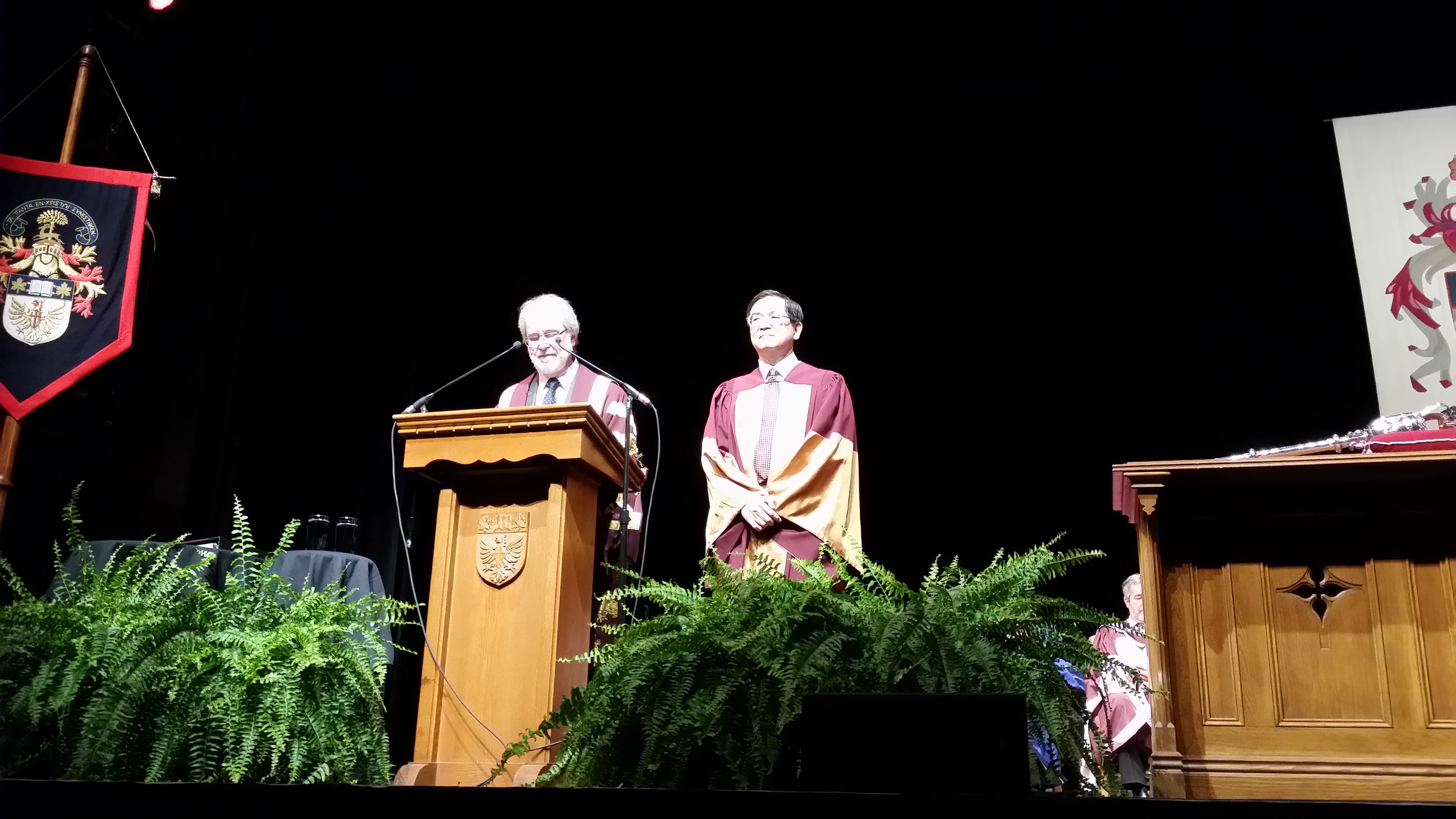 On June 17, 2016, Dr. Gordon Huang was recognized at McMaster University's Spring Convocation ceremony with an Honorary Degree, Doctor of Science. In his remarks to the graduating students Dr. Huang reflected on his time as a young Ph.D. student and how McMaster University shaped his career, crediting his supervisors Dr. Brian Baetz and Dr. Gilles Patry for their dedication and mentorship to his success.
