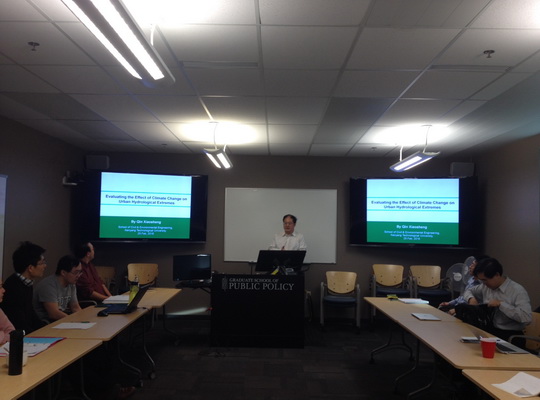 From February 22 to 24, 2016, IEESC alumni Dr. Xiaosheng Qin visited EIL. Dr. Qin is currently Associate Professor with School of Civil and Environmental Engineering in Nanyang Technological University, Singapore. He got his PhD degree at IEESC in 2008. On February 24, Dr. Qin gave an interesting seminar entitled "Evaluation the effects of climate change on urban hydrological extremes". After it, Dr. Qin had a thorough discussion with IEESC staff and students on his latest research and possible collaboration. He was very satisfied with the visit outcome and would like to conduct more research collaboration with IEESC in the future.