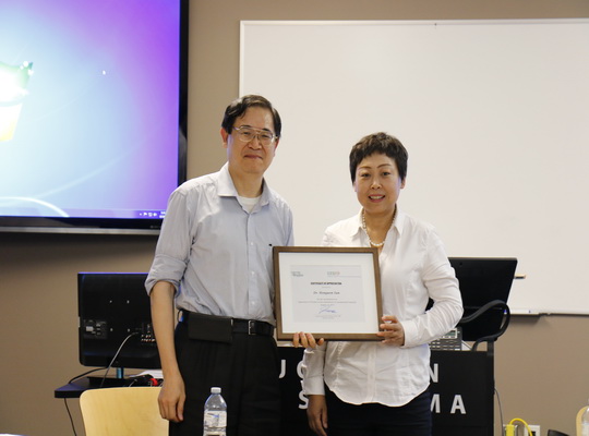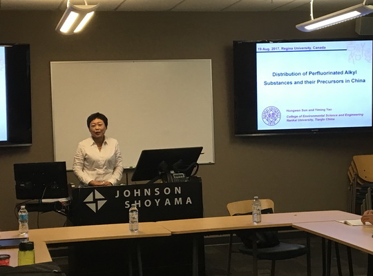 On August 19, 2017, Dr. Hongwen Sun from Nankai University in China arrived in Regina for a two-day visit to IEESC. Dr. Sun is currently dean and professor in the College of Environmental Science and Engineering. Dr. Sun delivered a seminar entitled "Distribution of Perfluorinated Alkyl Substances and their Precursors in China". Afterwards, Dr. Sun had a thorough discussion with IEESC members about their research and potential areas of collaboration. She was very satisfied with the visit and would like to conduct more research collaborations with IEESC in the future.