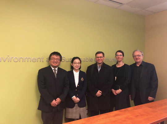 On March 13, 2018, Nick Xenos from the Treasury Board of Canada Secretariat visited the Institute. The Centre for Greening Government tracks and reports on the federal government's emissions centrally, coordinates greening efforts across government, and drives results to ensure the Government of Canada meets its GHG reduction targets. The meeting included a discussion on research and ways to help the Government reduce its emissions and support climate change efforts.