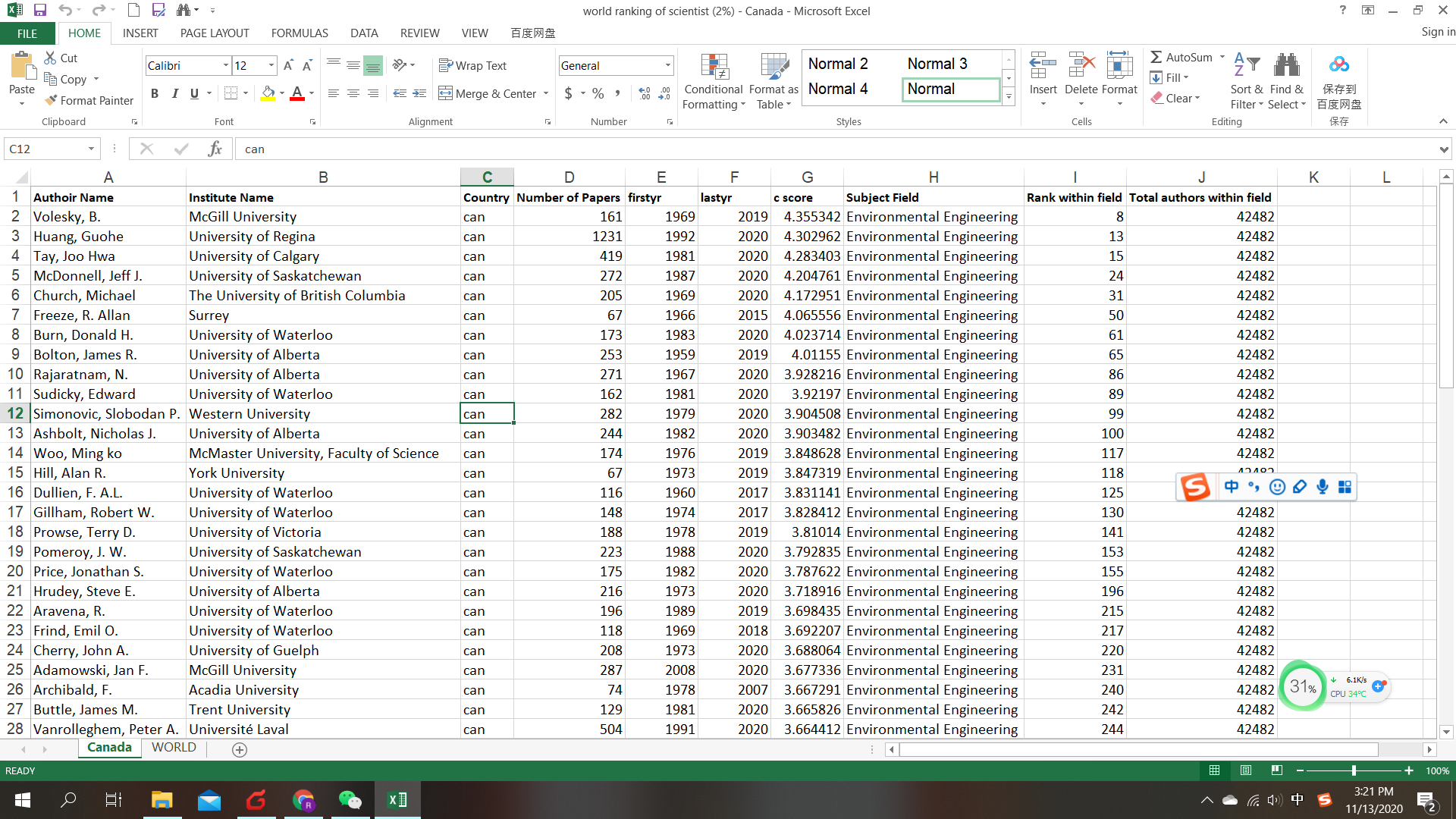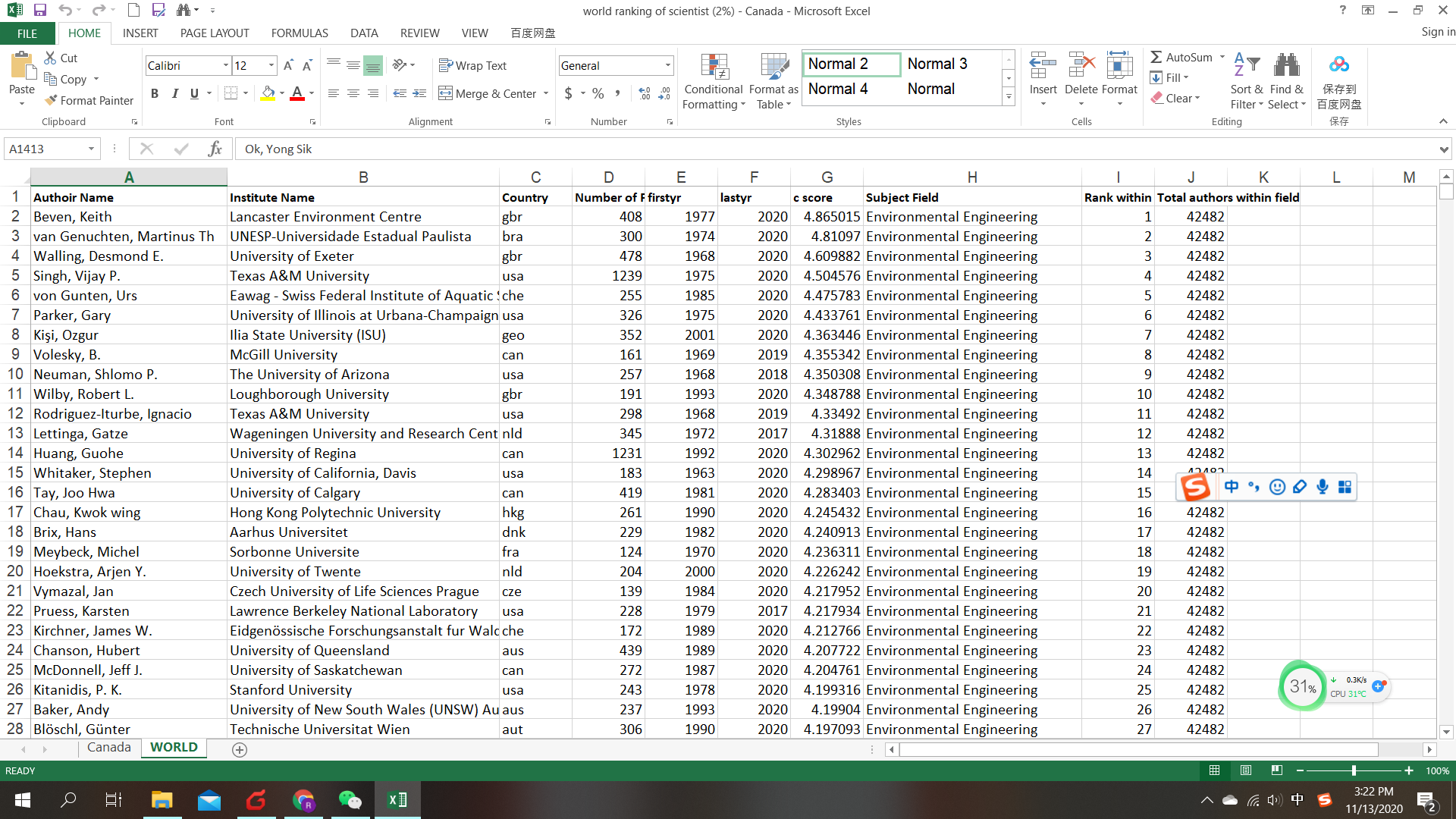 IEESC Executive Director Dr. Gordon Huang has been ranked 13th globally and 2nd nationally in the field of environmental engineering according to the 2020 Stanford University World Ranking for Scientists. Dr. Huang's c-score is 4.30296.